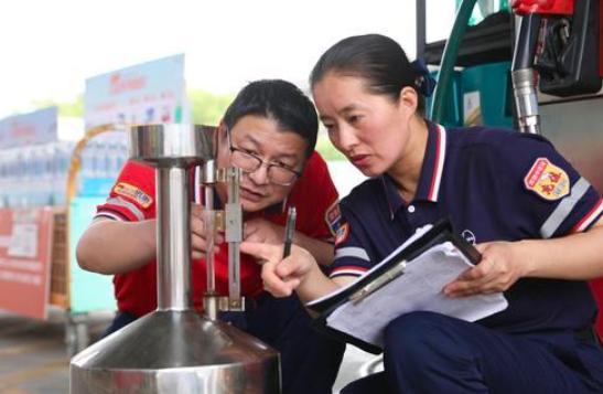 图2:在“世界计量日”到来之际,浙江台州石油在加能站发放宣传资料、直观展示抽检油样、现场进行加油机校验,履行“每一滴油都是承诺”的社会责任。图为5月15日温岭第一加能站员工对加油机进行计量检定。陈敏燕摄