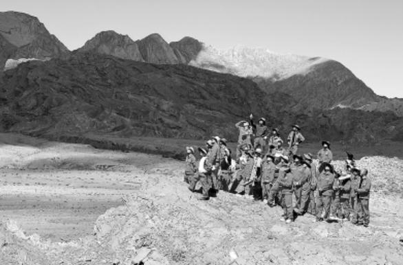 5月26日至30日,西北油田勘探开发研究院开展野外地质考察,选派学科专家和技术骨干,带领30余名来自研究院和各采油气厂的学员,在天山深处翻山越岭,以天地为课堂、以露头为教材,向学员们生动讲述塔里木盆地北部新近系至震旦系各套地层的特征,提升青年科研人员业务水平。图为5月27日,学员们远距离观察剖面颜色、标志层和旋回。