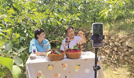 直播团队携手栖霞市唐家泊镇肖家夼村直播销售樱桃。