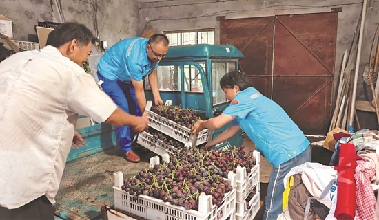 山东销售聊城分公司新城片区党支部书记夏万涛号召党员成立“助农志愿服务队”,为当地种植大户售卖葡萄。志愿者们进入葡萄种植园后,在种植大户的指导下,人手一把剪刀,对每一串葡萄进行仔细修剪。大家分工协作、干劲十足。不到3个小时,300箱葡萄就采摘完毕,并顺利装车运输。“助农志愿服务队”用实际行动诠释了“为人民服务”的宗旨,他们不仅是乡村振兴的积极参与者,也是有力推动者。
