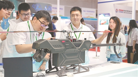 博览会现场观众对管道局投运公司长航时电动无人直升机充满兴趣。 王汐 摄