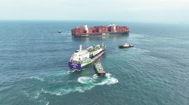 今年1月10日,香港《2024年船舶法例(燃料使用及杂项修订)条例》生效后,昆仑能源积极响应香港环保要求,精准对接、高效落实香港清洁能源应用需求,迅速启动香港首单“船对船”海上LNG船用燃料加注作业准备工作。本次受注船“以星海蓝石”号于2月3日从韩国釜山起航,经中国青岛、上海、宁波等地,12日抵达香港,最终目的地为土耳其伊斯坦布尔。此次加注可以满足该航船的全程燃料需求。参与作业的加注船由昆仑能源所属企业运营。加注船设有两个独立式“C”型罐,最大装载容积为8500立方米,可为客户提供包含冷舱、除气、LNG加注等一站式定制服务。