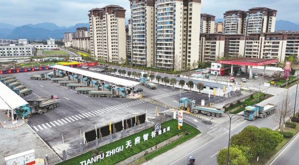 3月15日,在四川销售首座站外重卡充电站——天府智谷速充港内,一辆辆重卡车辆和新能源私家车整齐有序地补充电能。自年初正式投运以来,该站累计充电量已突破100万千瓦时。近年来,四川销售公司加快构建区域重卡充电生态圈,着力提升消费者出行体验。天府智谷速充港位于都江堰市天府大道,是阿坝州至成都的重要交通枢纽,可同时为50辆重卡充电。该站作为四川销售首座站外重卡充电站,还集车辆销售及维修、司机休息、日常用餐于一体,可满足客户个性化需求。