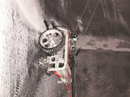 “爬壁机器人”有3个强力吹扫口和1台前置摄像头,能直接观察反应器内粉尘的清理情况。在底部强磁铁作用下,机器人可以直接吸附在器壁上,通过底轮实现在反应器内的自由移动,吹扫范围广。同时,“爬壁机器人”还配有两根防坠线,可以有效防范掉落产生的风险。此外,这类“除尘特工”可有效降低装置生产铬系产品期间低聚物结块造成的静电波动及参数异常,能够进一步提升铬系料、茂金属等产品质量和生产装置长周期运行水平。