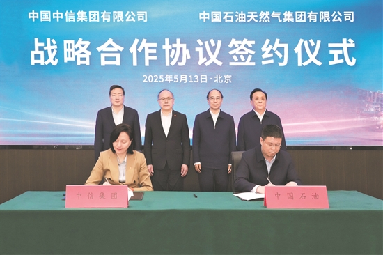 中国石油集团总会计师、党组成员周松,中信集团党委委员、副总经理曾琪代表双方在协议文件上签字。双方有关部门负责同志参加活动。