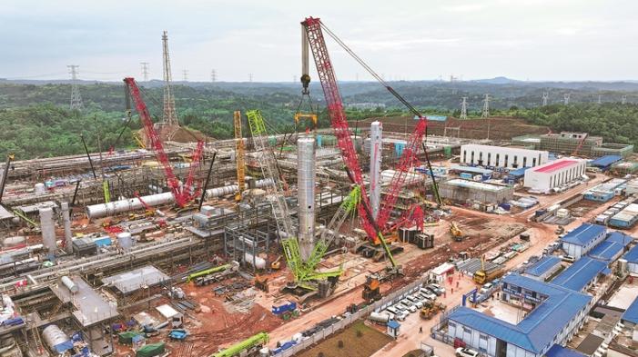 安岳第二净化厂及外输系统建设工程的施工现场。