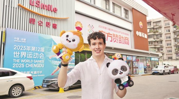 “您好,欢迎光临中国石油!”2025年第12届世界运动会(简称世运会)期间,四川销售公司在成都地区打造了13座具备世运会元素的综合能源站,为中外嘉宾提供赛事指南手册和旅游信息咨询,运动员、志愿者还可以在综合能源站享受优先加油、行李寄存、手机充电等定制化服务。世运会的大使“蜀宝”“锦仔”在世运会纪念品销售专区、加油区、便利店、商品货架上随处可见,浓厚的氛围吸引客户走进综合能源站。