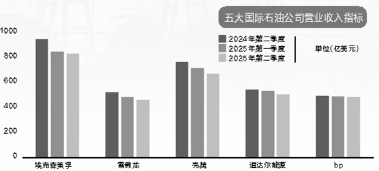 2025年第二季度,埃克森美孚、雪佛龙、壳牌、道达尔能源和bp这五大国际石油公司实现营业收入2900.75亿美元,同比下降9.7%,实现未调整归属母公司的净利润(以下简称净利润)174.89亿美元,同比下降16.1%;2025年上半年,五大国际石油公司实现营业收入5911.02亿美元,同比下降6.8%,实现净利润380.2亿美元,同比下降23.8%。