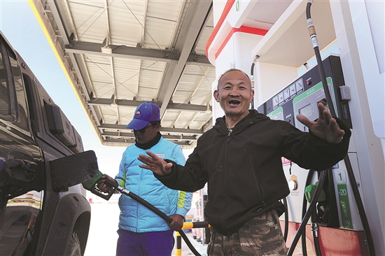 自从2024年10月投运以来,日均400余台车的加油工作量给先遣乡加油站的3名员工带来了不小的挑战。“上一个加油站距离这里有140公里,再往前又是500多公里的路程,中间还有景点,即便是刚刚加满油的车也会在这里停一下,有时候提枪甚至是只加20元的油。”站经理贡觉告诉记者,这里4576米的海拔高度,很多时候加油员也需要吸着氧气来支撑工作。