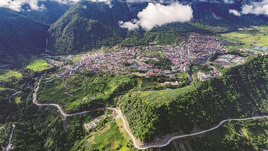 隐藏在秘境中的墨脱县城全貌。 吕殿杰 摄
