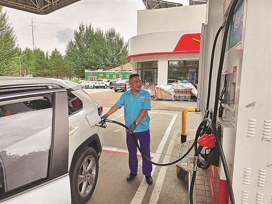 齐齐哈尔天龙加油站员工为自驾车辆加油。赵薪淼 摄