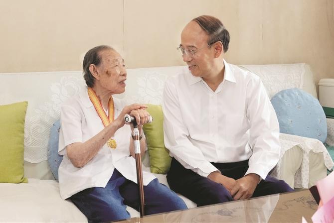 戴厚良看望慰问参加过抗战的老战士和老同志。