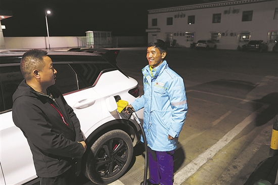 我们这里是纯柴油站,超过90%的客户都是物流和长途客运司机。我2020年来这里的时候,这个站已经是“万吨站”了。由于之前并没有管理柴油站的经验,当时非常担心自己能不能管理好这座大站。我一直告诉员工,要用亲情化服务满足客户需求,给客户“家”的感觉。来往的大车非常多,我们仍然每天多次对店内进行打扫,连货架上饮品的瓶盖也不放过,客户每次进店都感觉很温馨。2023年,我们年销量突破3万吨,成为西藏销售成立61年来首座3万吨加油站。当地的快速发展吸引了越来越多的人进藏,也带动了我们油品销量不断增长。这几年,我们发现顾客的消费习惯也在发生变化,他们对于便利店内的商品品牌越来越重视,比如还会关注矿泉水的产地,有时也会给我们选品提供指导,这也倒逼我们的非油商品品质不断提升。(余果林 采访)