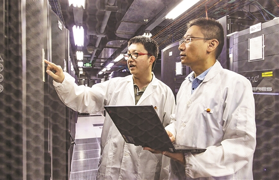 油田数智技术公司数据机房管理人员进行设备巡检,为油田绿色生产保驾护航。