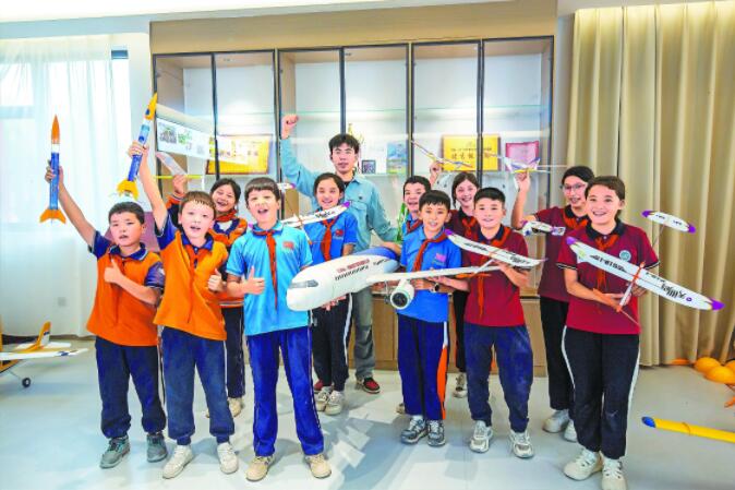 塔河炼化结对帮扶的岳普湖县也克先拜巴扎镇中心小学航模兴趣班课堂。金 戈 摄