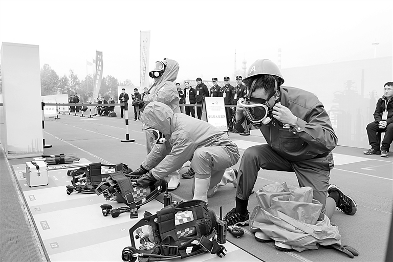 图为参赛选手参加团队应急演练竞赛。