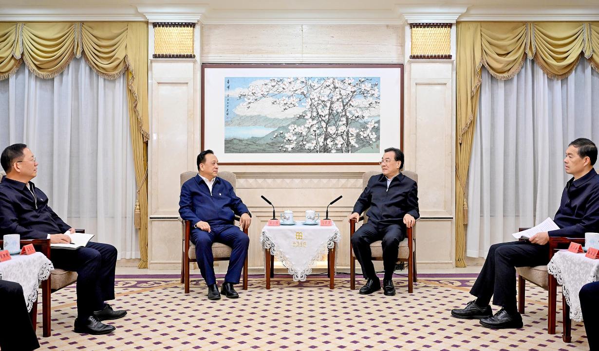 11月24日,中国石化集团公司党组书记、董事长侯启军在南京拜会江苏省委书记、省人大常委会主任信长星,省委副书记、省长刘小涛。双方就进一步深化合作进行深入交流。