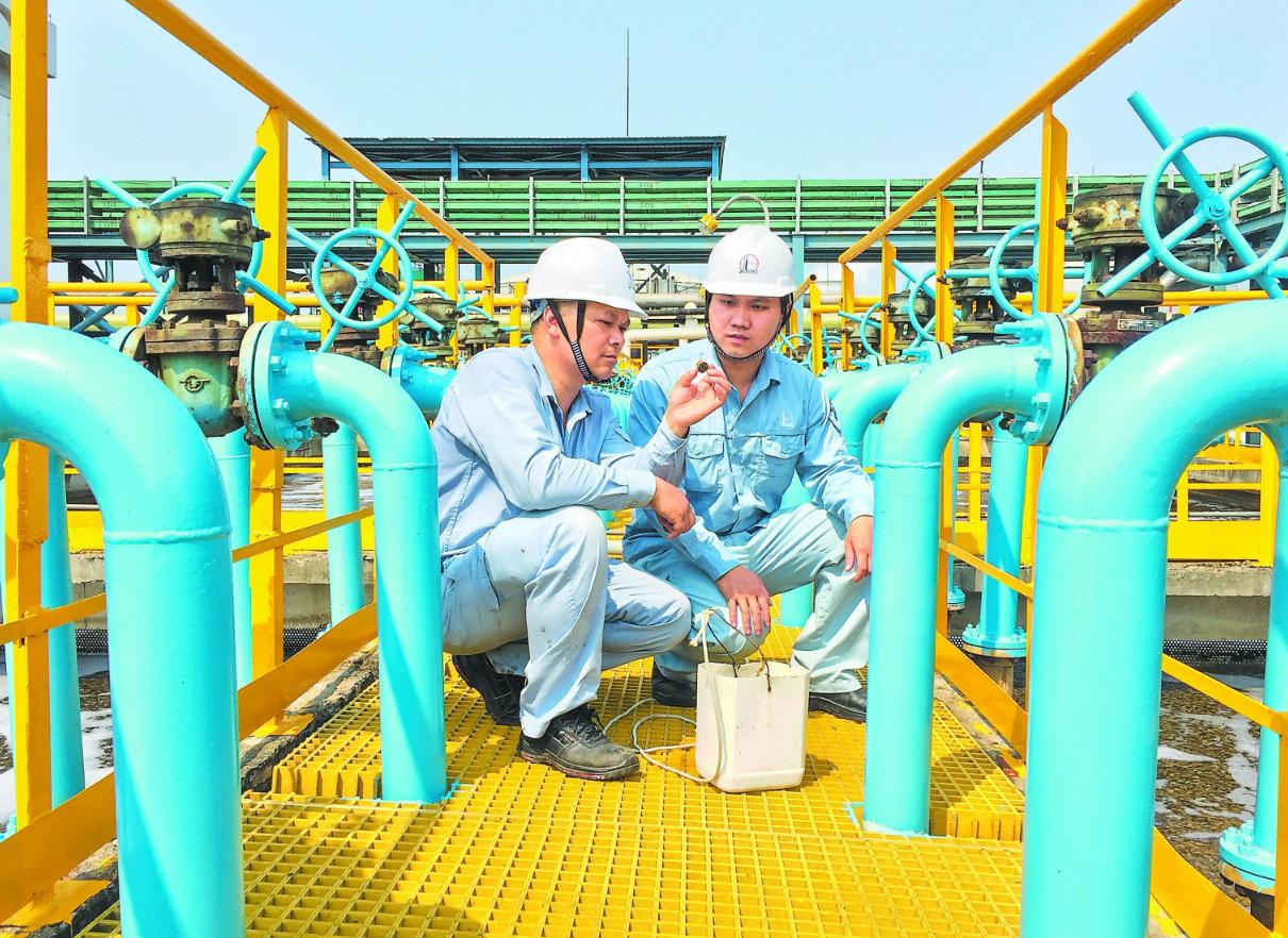 茂名石化全力推进节水项目落地和生产流程优化,前11个月废水回用率超年度指标。图为12月5日水务部员工检查废水处理系统运行情况。