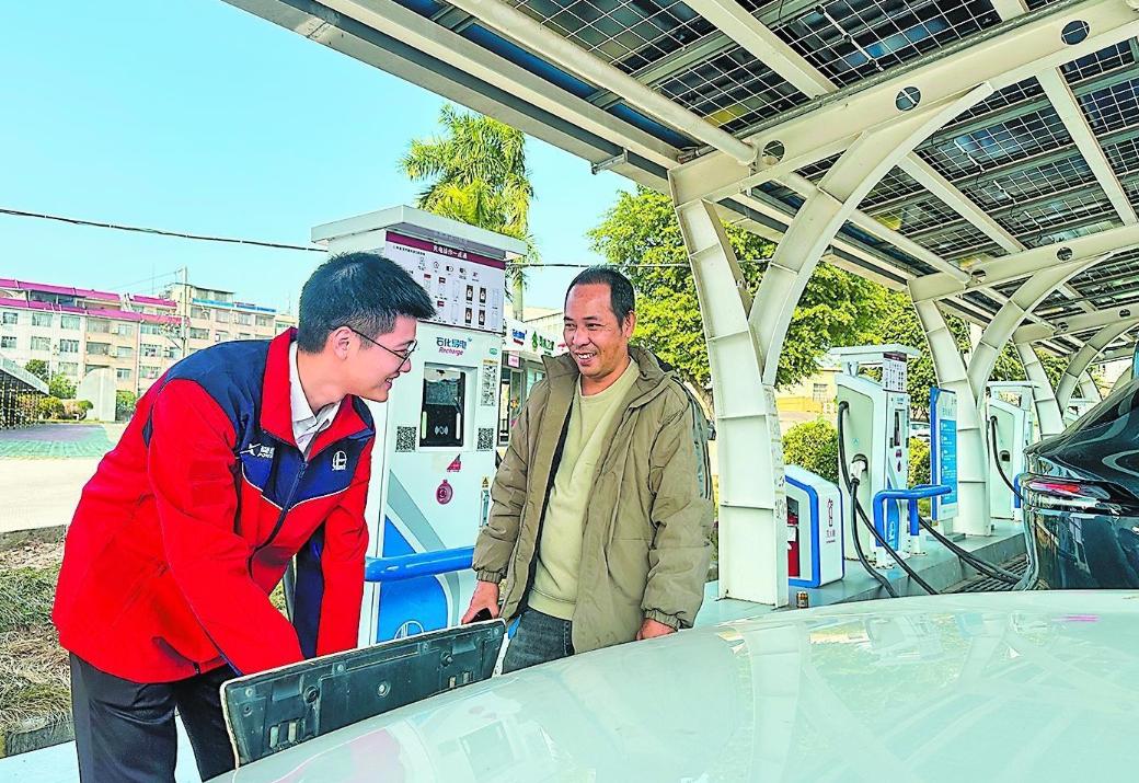 广西石油强化充电运营管理,持续做大售电规模。前11个月,广西石油售电公司交易电量超10亿千瓦时、自营充电量超2亿千瓦时。图为12月8日钦州石油育才充电城员工为客户提供充电服务。