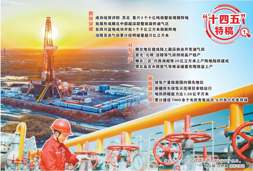 “十四五”期间,中国石化深入践行能源安全新战略,坚持实施大力提升油气勘探开发力度“七年行动计划”,国内油气产量当量连创历史新高,绿色能源加快发展——
