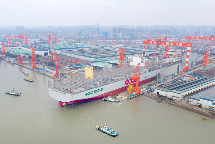 全球最大级别甲醇双燃料集装箱船下水(图)