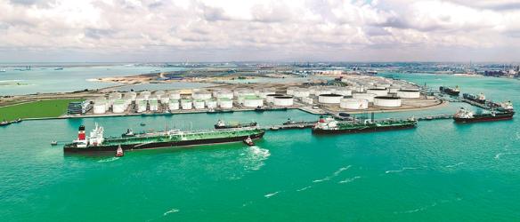 图为中国石油国际事业(新加坡)公司在新加坡合资建设的裕廊環宇燃料储存区。