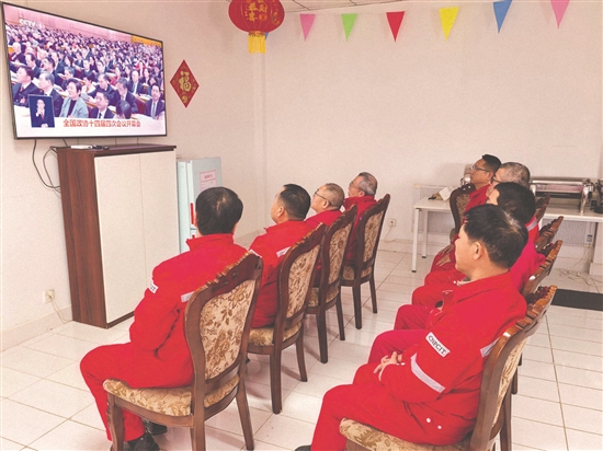 从钻井现场,到化工阵地,再到销售前沿,干部员工立足岗位、畅谈愿景,将两会精神转化为干事创业的强大动力。渤海钻探钻井四公司工程技术部主任郭耀倍感振奋:“我们要持续优化钻井工艺,提升单队单机作业效率和创效能力,在保障国家能源安全的实践中展现新作为。”