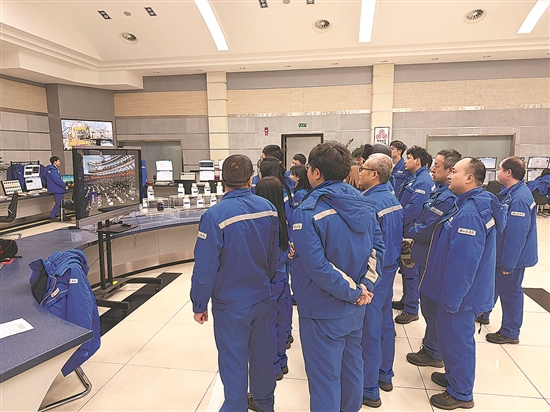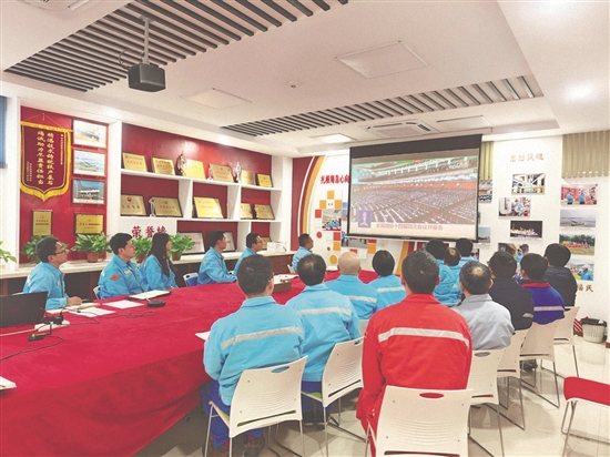 天然气销售江苏LNG公司生产运营中心党支部组织党员集中收看两会实况。 周运妮 摄