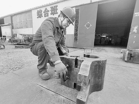 老班长的高超技艺可不是吹的。2月初的一天,综合班从钻井队回收了一个不能用的吊卡。本来都要扔到废料堆里了,戴红军却说让他再看看。他没急着上手,先蹲在地上眯着眼打量,枯瘦的手指在吊卡的卡槽处轻轻摩挲,笃定地说:“问题不大。锁舌弹簧松了,还有卡槽里卡了沙子。”他从工具箱里摸出一截旧牙刷,蘸了一点柴油,顺着卡槽的缝隙一点点地刷起来。沙粒混着油污变成黑泥,他就用指甲抠出来。指尖被蹭得发亮,他也浑然不觉。