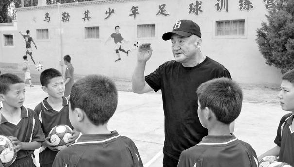 图为黄峰指导马勒其村少年踢足球。