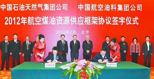 [中国石油报2012-02-17]2月16日,中国石油天然气集团公司与中国航空油料集团公司在北京签署2012年航空煤油资源供应框架协议。