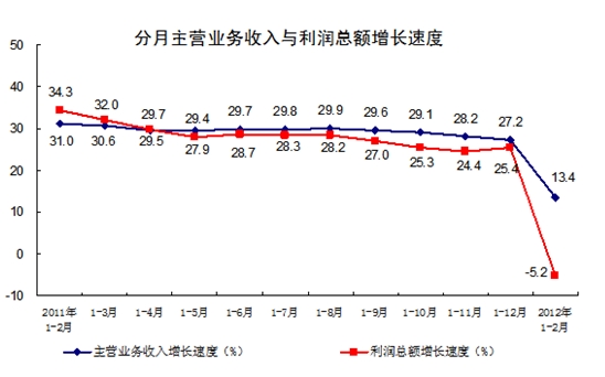 1-2月规模以上工业企业利润同比下降5.2%