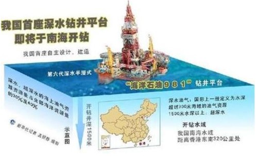 据了解,此次开钻水域在我国南海水域距离香港东南320公里处,开钻井深1500米。