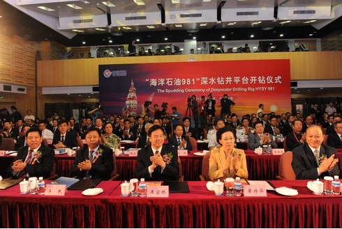 领导和嘉宾们共同见证“海洋石油981”开钻的历史时刻。