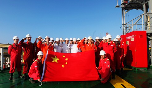 为我国海洋石油工业“深水战略”再建新功,是海油人在国旗前的誓言。