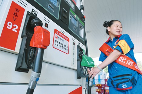 图为北京石油天利加油站员工为客户加京5标准汽油。记者胡庆明高君摄影报道