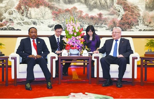 集团公司总经理周吉平会见尼日尔总统伊素福。(记者余海摄)