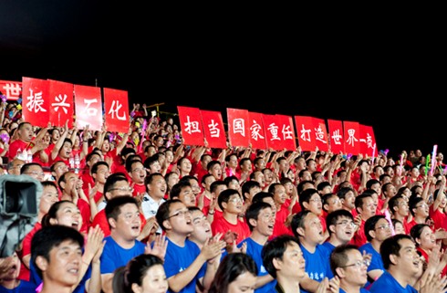 晚会舞台以普光气田天然气净化厂为背景,2000多名中国石化员工组成了6个观众方阵。晚会上,普光气田员工表演了川剧《变脸》,歌曲《西部放歌》和《飞得更高》,展示了中国石化员工多才多艺、昂扬向上的风采。央视著名主持人毕福剑现场采访了中国石化劳动模范,在了解普光气田先进的开发技术和员工的无私奉献精神,以及中国石化绿色发展理念的同时,也为观众带来了惊喜。这期《星光大道》的11位评审委员均由普光气田的省部级劳动模范担任,整场晚会既呈现了高水准的艺术表演,也较好地体现了中国石化负责任、勇担当的企业形象。