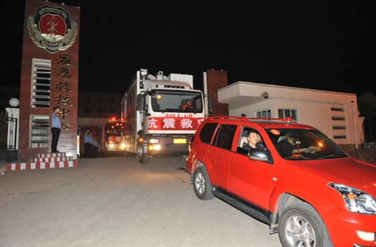 图为9月8日1时多,中国石化普光应急救援突击队连夜奔赴云南彝良参加抗震救灾。祝广影摄