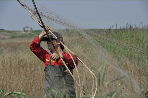 捕鸟网的网丝比头发还细,如果缠住鸟儿,又没人及时发现的话,鸟儿很难脱身。去年,志愿者多次深入湿地清除捕鸟网,累计清除捕鸟网具20多公里长;看到东方白鹳觅食困难,志愿者就带着工具专门破冰,为它们觅食提供方便。