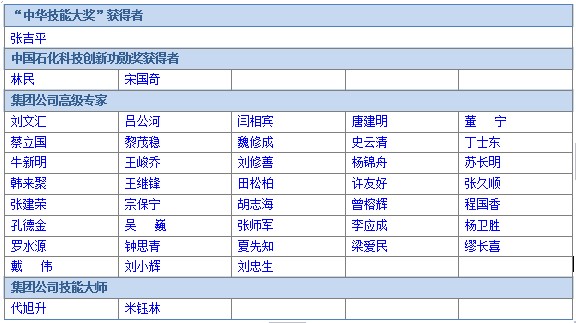 中国石化优秀技能、科技人才简介