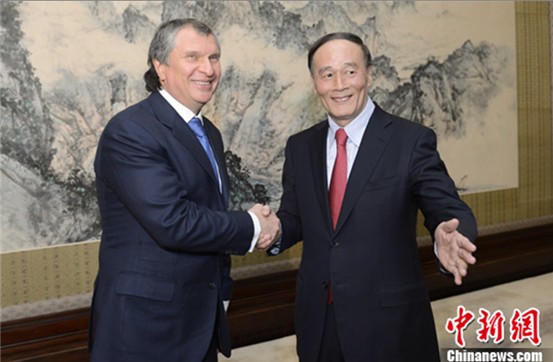 王岐山会见俄罗斯政要谢钦 谈加强双边能源合作(图)