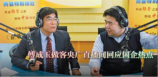 新当选全国政协常委的傅成玉,3月12日下午接受中央人民广播电台经济之声专访,畅谈国企的责任与担当,回应垄断、工资、油价等敏感话题,期待人民更多分享央企改革发展成果。