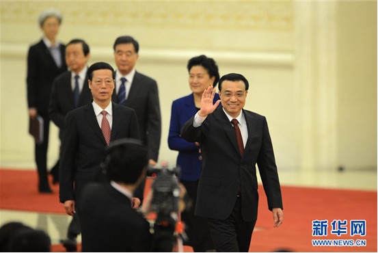 3月17日,国务院总理李克强和副总理张高丽、刘延东、汪洋、马凯在北京人民大会堂与中外记者见面,并回答记者提问。新华社记者王鹏摄