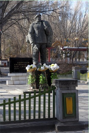 1993年,玉门市在铁人出生地和平村修建了铁人王进喜故居纪念馆,并在玉门油城公园矗立了铁人铜像。人们缅怀铁人,“宁肯少活二十年,拼命也要拿下大油田”、“有条件要上,没有条件创造条件也要上”的铮铮誓言已经浓缩为铁人精神,激励着一代代石油人爱国奉献,奋勇向前。王华摄