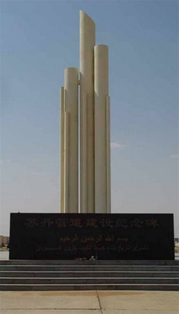 2000年11月14日,在苏丹首都喀土穆郊外的戈壁上,用苏丹管道建设中剩余钢管作为材料的“苏丹管道建设纪念碑”落成。碑文记述了苏丹输油管道的建设情况,最后写道:“中国管道工人为此付出了极大的努力和代价,张立福、郑德宝、徐庆、吕焕仁、老士敏五位员工长眠于此。我们将永远怀念他们。”林培军提供