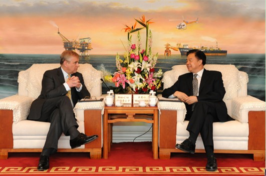 4月10日下午,总公司董事长王宜林在北京总部大厦会见了来访的英国约克公爵安德鲁王子,就中国海油在英国投资与合作广泛交换了意见。总公司副总经理、有限公司首席执行官李凡荣及有关负责人参加会见。(记者荫放摄影报道)