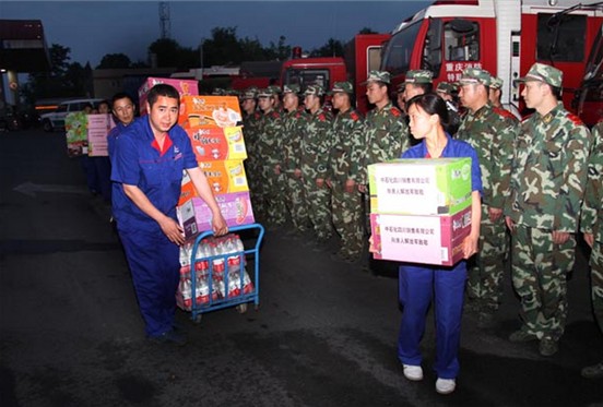 据该部队作战指挥中心副主任张雪松介绍,连日来,由于进入地震重灾区芦山县、宝兴县的道路因塌方多处中断,部队200多名官兵无法携带重型装备进点救援。灾情紧急,他们一部分人员轻装徒步翻越夹金山、四姑娘山驰援灾区。另一部分官兵停留在成南高速路淮口服务区原地待命。四川销售公司得知后,安排加油站员工前去慰问官兵,并主动为救灾部队提供饮水、供电等服务,以实际行动全力支援抗震救灾。