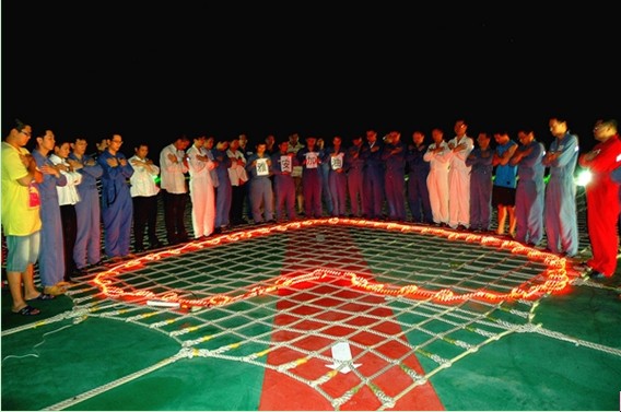 4月20日晚,南海西部海域东方气田作业区乐东15-1气田全体员工在停机坪上举行了为雅安地震遇难者默哀仪式。生产监督谭向君说,天灾面前人如此脆弱,这更提醒我们在日常工作中确保安全是何等重要。
