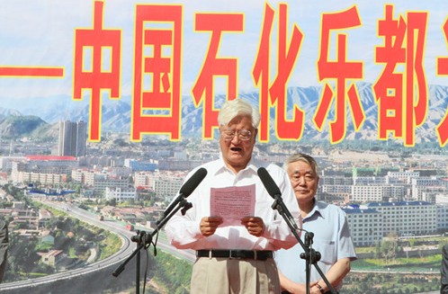 图4:中国石化集团公司原党组成员、副总经理张家仁在探访仪式上发言。